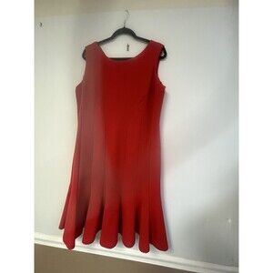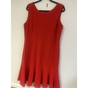 Lane Bryan Bright Red Fit & Flare Dress Knee Length Zip Holidays Size 14-16