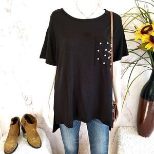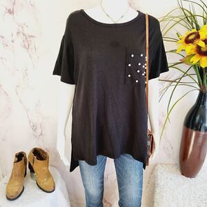 Lane Bryan short sleeve knit sweater with pearl pocket detail