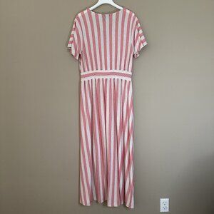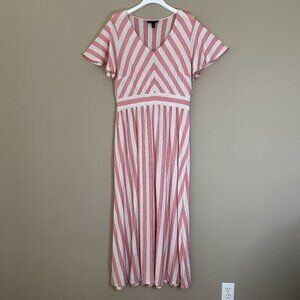 Lane Bryant 14 16 Short Sleeve Chevron Stripe Maxi Dress Coral Flutter Sleeve