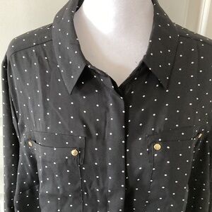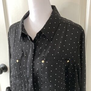 Lane Bryant 14 16 blouse polka dots black white long sleeves