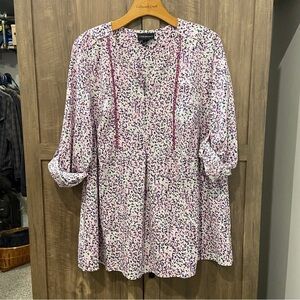 Lane Bryant 14/16 Popover Top Shirt roll tab sleeves notch neck