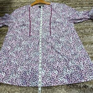 Lane Bryant 14/16 Popover Top Shirt roll tab sleeves notch neck
