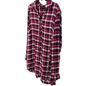 Pre-Owned Lane Bryant 14/16 Purple Pink Rayon Flannel Plaid Lace Up Collar Top. Excellent condition, no issues.