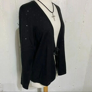 Lane Bryant 14/16 black sequin bow tie cardigan Fairycore Whimsigoth Feminine
