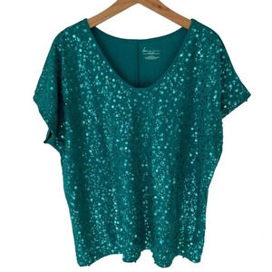 Lane Bryant 14/16 green sequined front short sleeve top