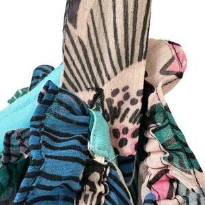 Lane Bryant 16 Petite Maxi Dress Off the Shoulder Ruffle Blue Green Floral Leaf