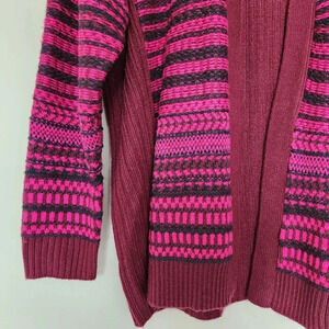Lane Bryant 18/20 Cardigan Sweater Chunky Knit Fair Isle Maroon Pink Ribbed