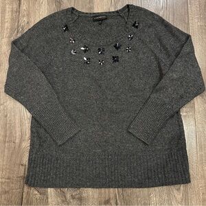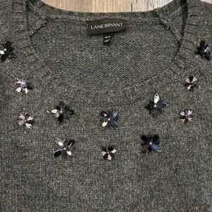 Lane Bryant 18/20 Dark Gray Embellished Glitz Sequin Floral Wool Blend SWEATER