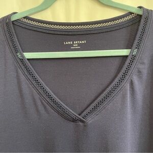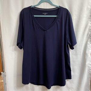 Lane Bryant 18/20 Deep Blue V-Neck Short Sleeve Top Summer Casual