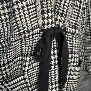 Lane Bryant 18/20 Houndstooth Jacket Peacoat Self Tie Frayed Hem Wool Pockets