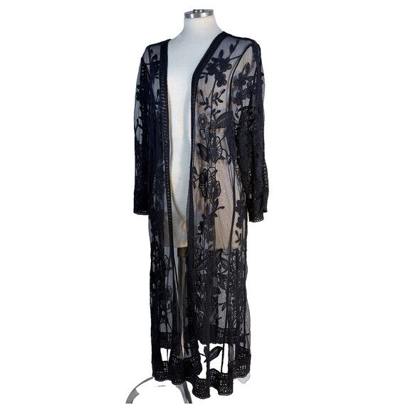 Lane Bryant Size 18/20 Navy Blue Floral Lace Open Front Duster Sheer Mesh Romantic