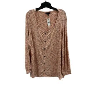Lane Bryant 18/20 Orange Heather Stretch Knit Faux Button Front Top Plus