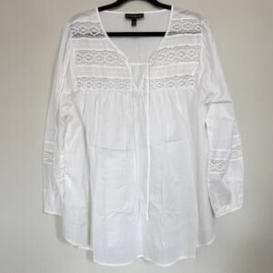 Lane Bryant 18/20 Poet Shirt White Lace Inset Coquette Boho Cottage Renaissance