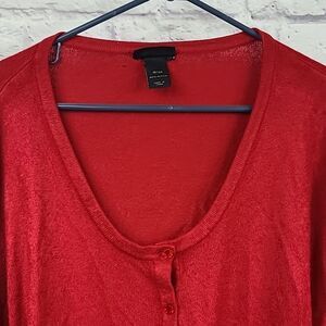 Lane Bryant 18/20 Red Kimono Cardigan Sweater Short Sleeves Loose Sparkly Button
