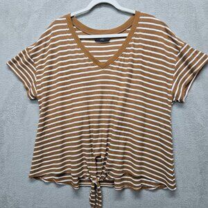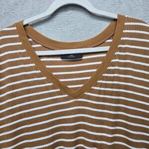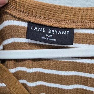 Lane Bryant 18/20 Striped Top Tan Cream waffle Knit
