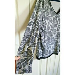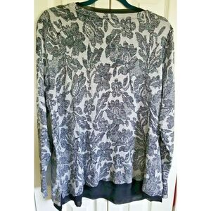Lane Bryant 1X Knit Long Sleeve Grey/Black Lace Accent Sweater Plus Size 18/20