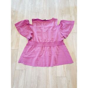 Lane Bryant 20P Top Cold Shoulder Blouse Flutter Sleeve Lavender Cinch Waist