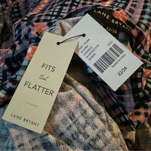 Lane Bryant 22 24 2X Tank Top Shirt Pink Blue Striped Sleeveless Scoop Neck Knit