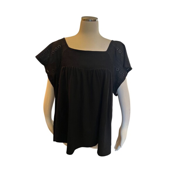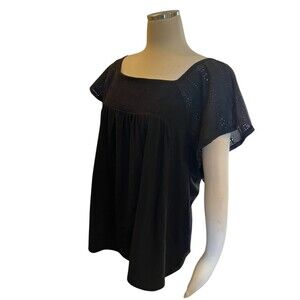 Lane Bryant 22 24 Blouse Top Black Lace Romantic Plus 3X Ruffle Eyelet