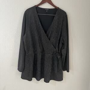 Lane Bryant 22/24 Metallic faux wrap top Illusion Collection blouse