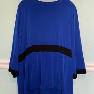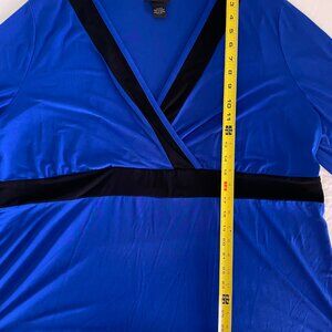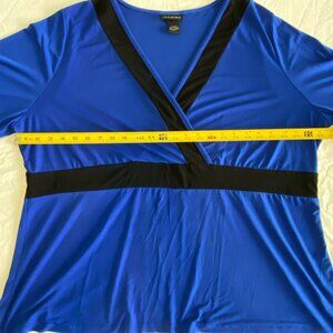 Lane Bryant 22/24 Royal Blue & Black Blouse 3/4 Sleeve V-Neck Stretch Top