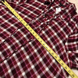 Lane Bryant 22W 24W Purple Pink Rayon Flannel Plaid Lace Up Collar Tunic Top