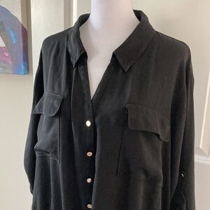 Lane Bryant 26 28 black sheer blouse button down v-neck collar