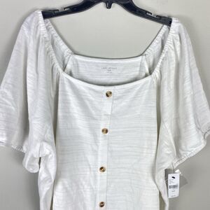 Lane Bryant 26/28 4X Women's White Top Short Sleeve Cotton Button Detail New with tag