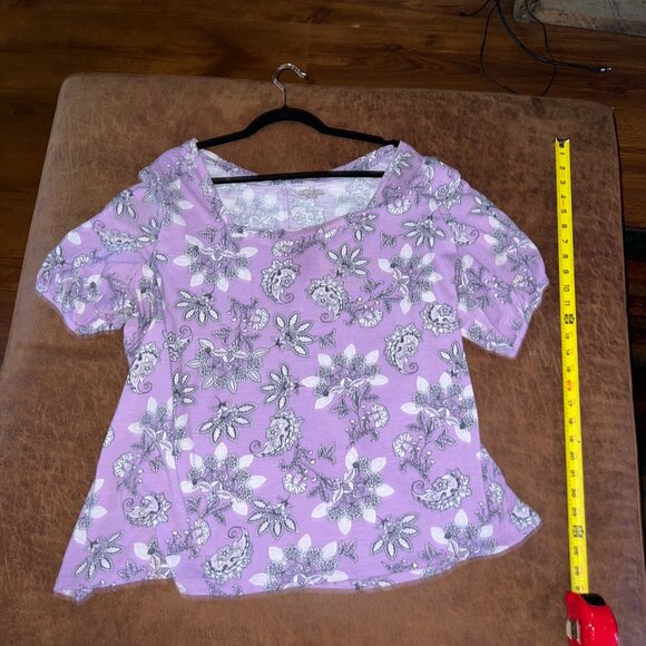 Lane Bryant 26/28 Lilac Floral Short-Sleeve Tee – Soft Cotton Blend