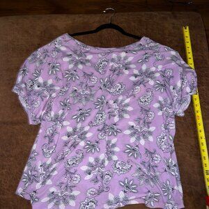 Pretty lilac short-sleeve top with a black-and-white floral print. Lightweight and comfy with a relaxed fit, perfect for everyday wear. Good pre-owned condition with normal light wear.