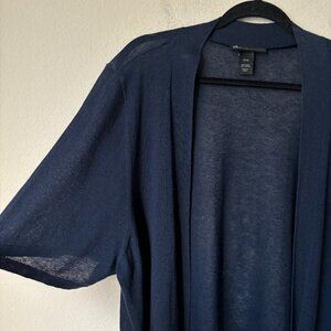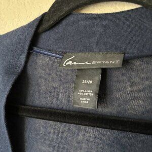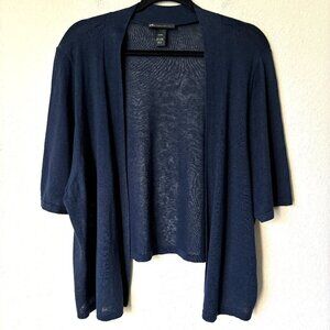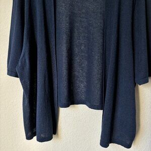 Lane Bryant 26/28 Linen Cotton Blend Open Front Cropped Navy Sweater Cardigan