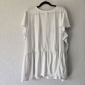 Lane Bryant 30/32 White Floral Embroidered Blosue Flutter Short Sleeve V Neck