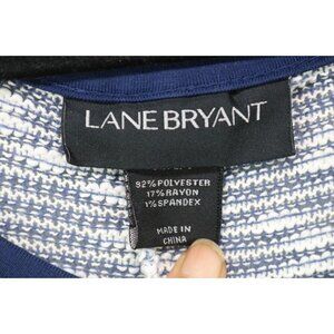 Lane Bryant 3/4 Dolman Sleeve Sweater-Size 22/24-Open Knit. The material is 82% Polyester, 17% Rayon and 1% Spandex. Laying flat measuring the length it is 32''.