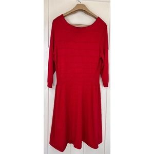 Lane Bryant A Line Dress Women's 18 Red Sweater Textured V Neck Long Sleeve Work
