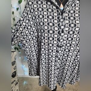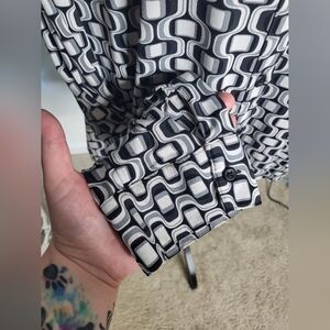Lane Bryant Abstract Black and White Long Sleeve Button Down Blouse