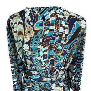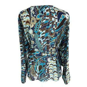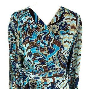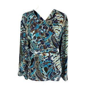 Lane Bryant Womens Wrap Top Blue Brown Abstract Long Sleeves V Neck Blouse 22/24