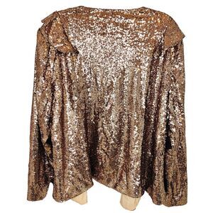 Make a dazzling entrance at any special occasion with this stunning Lane Bryant sequined jacket in metallic copper / rose gold. Perfect for holiday parties, weddings, and other celebrations, this jacket will make you the star of the night.