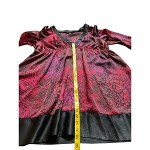 This stunning Lane Bryant animal print dress is a showstopper in bold red and black. Designed with a plunging V-neckline and a flattering empire waist, it creates a beautiful silhouette that’s both confident and feminine. The three-quarter puff sleeves add a touch of elegance and comfort, while the flowy A-line shape makes it perfect for everything from office wear to a night out. Pair it with heels or boots for an effortlessly chic look. In excellent pre-owned condition. Ships quickly from a pet-free, smoke-free environment. Colors and measurements may vary slightly due to differences in lighting, display settings, or AI-generated rendering.