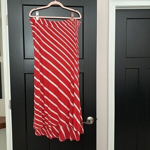 Lane Bryant Asymmetrical Red and White Striped Maxi Skirt. Size 14/16