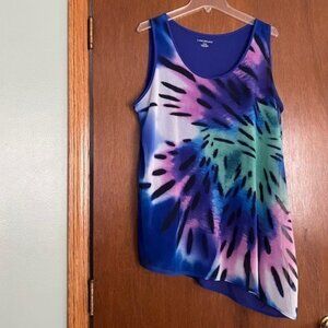 Lane Bryant Asymmetrical Tank Top size 14/16 blue. Left side slit, 100% polyester, Made in Vietnam, machine wash cold.