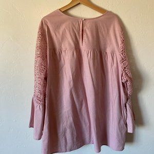 Lane Bryant Baby Pink Crochet Lace Ruffle Sleeve Top size 26/28