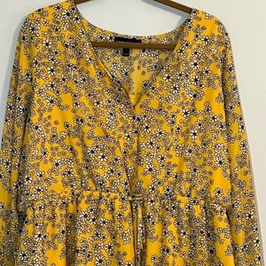 Lane Bryant Babydoll Floral Top 16 Yellow Boho Western Hippie Indie Concert 80s