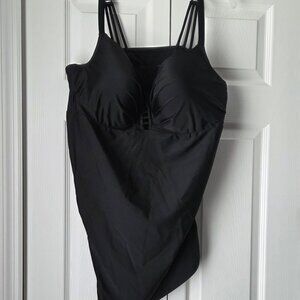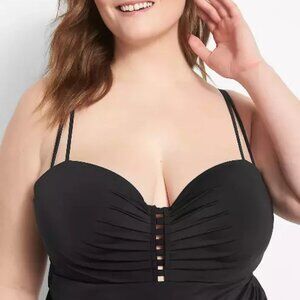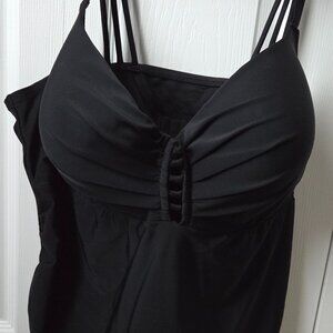 Lane Bryant Balconette Underwire Slightly Ruched Black Tankini Top size 42DDD
