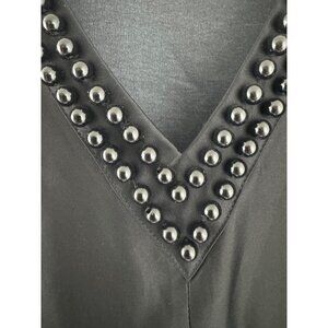 Lane Bryant Beaded V-Neck Shiny Black Long Top Blouse Size 22 3X Plus Shirt