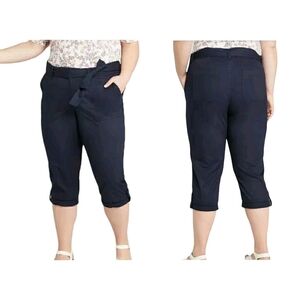 Lane Bryant Belted Utility Poplin Pedal Pants Size 16 in Navy Blue