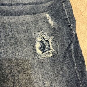 Lane Bryant Bermuda Denim Jeans with Distressing and Patchwork