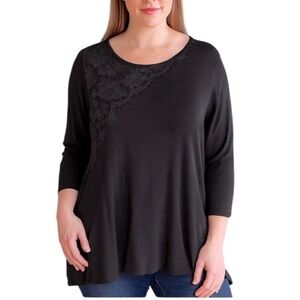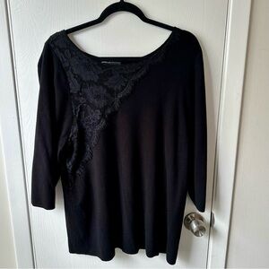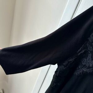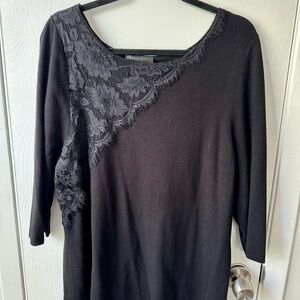 This chic black sweater by Lane Bryant features an asymmetrical neckline and 3/4 sleeves, perfect for a cocktail night out. The elegant lace detail adds a touch of sophistication, while the soft knit fabric ensures comfort and style.