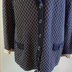 Lane Bryant Black & Beige Cardigan Sweater Diamond Pattern 100% Cotton Sz 14/16. Very Nice Condition.