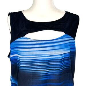 Lane Bryant Black Blue Striped Sleeveless Top Cut Out Design on chest with Ruched Sides. Stretch lining with overlay. Size 14/16. Can be dressed up or down!
