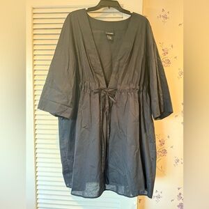 Lane Bryant cinch waist v-neck tunic or bathing suit cover up. Incredibly light weight, soft, and versatile. Great over a tank and shorts, jeans, or leggings. Also perfect for vacation or a day at the beach. 100% cotton.